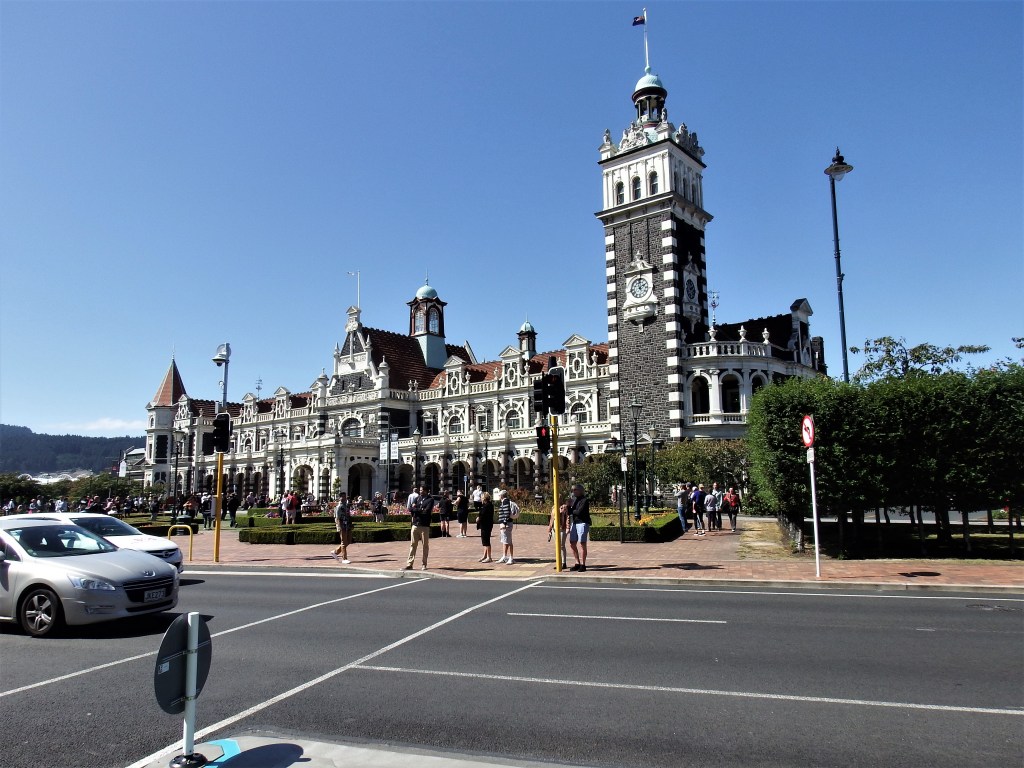 Dunedin New Zealand was settled 150 years ago this year by the Scottish. The architecture was spectacular. This was the railway station. Obviously not only was the building beautiful but the grounds had flowers and shrubs laid out as well as in Versailles. We went inside and looked at the stained glass.