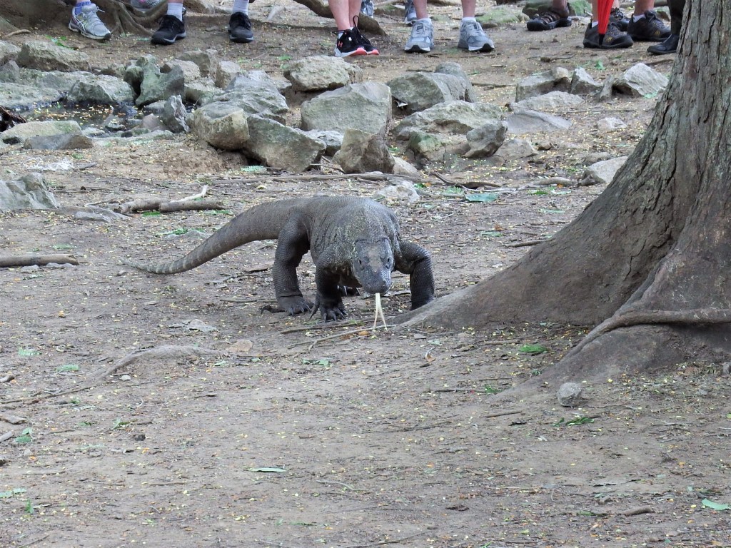 Indonesia is a large Archipelago with more than 13,000 islands. Most of them are uninhabited. But Komodo has the Komodo Dragon National Park. Supposedly there are about 2,000 people living on this very large but hilly island with something like 5,000 Komodo dragons.