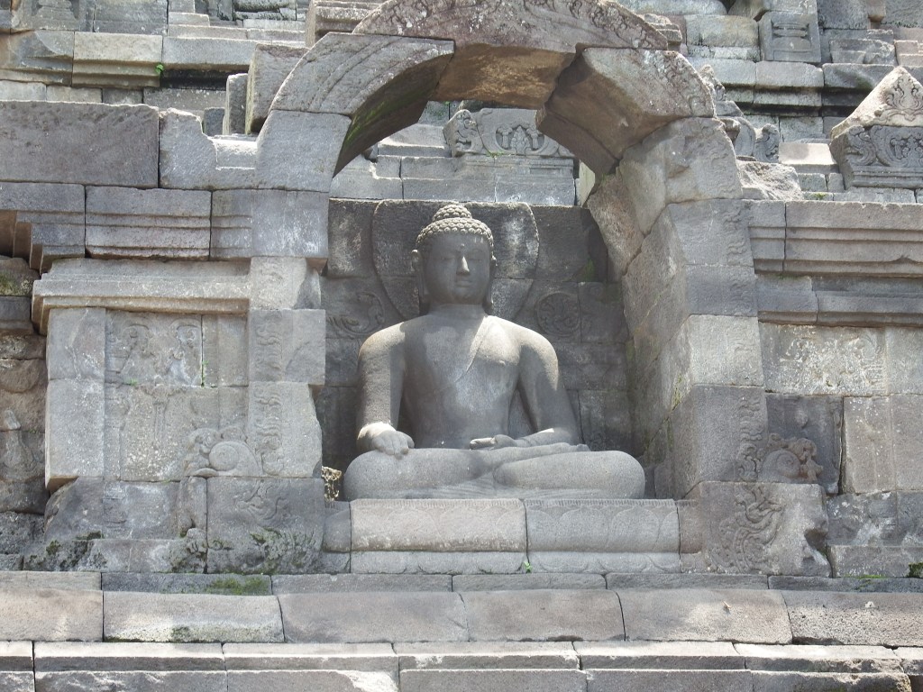 Borobudur is the largest Buddhist Temple. It is also the most visited tourist spot in Indonesia. Even more than Bali. We walked the entire temple. The guide told us the story which was somewhat interesting but way too complicated to remember. I did remember that it has three layers. The bottom is for desire and the top was Nirvana. 9 is an important number for Buddhists. The middle layer has 432 buddhas. 4+3+2 = 9. The top layer has 72 buddhas. Also a 9. And if 432 and 72 are added it is 504. Again 5 + 0+ 4 = 9. Lots of buddhas.