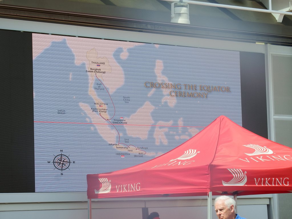 At 11 AM on Monday April 1 we crossed the equator and are now back in the Northern Hemisphere. I know. many will see this before 11 on April 1. You are just behind the times.