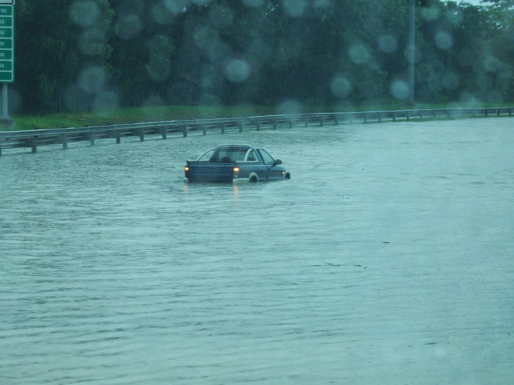 So after a full day of driving around the city and stopping at a fancy hotel for a delicious buffet lunch we drove back to the ship. It started to rain almost as soon as we got on the bus. It was a monsoon rain. Amazing! By the time we got to one particular toll booth there was only one lane of the road that had water shallow enough to drive through. Notice the truck in waist high water. And stalled out! It took several hours to get back to the ship. But we never got wet. The rain stopped before we got off the bus.