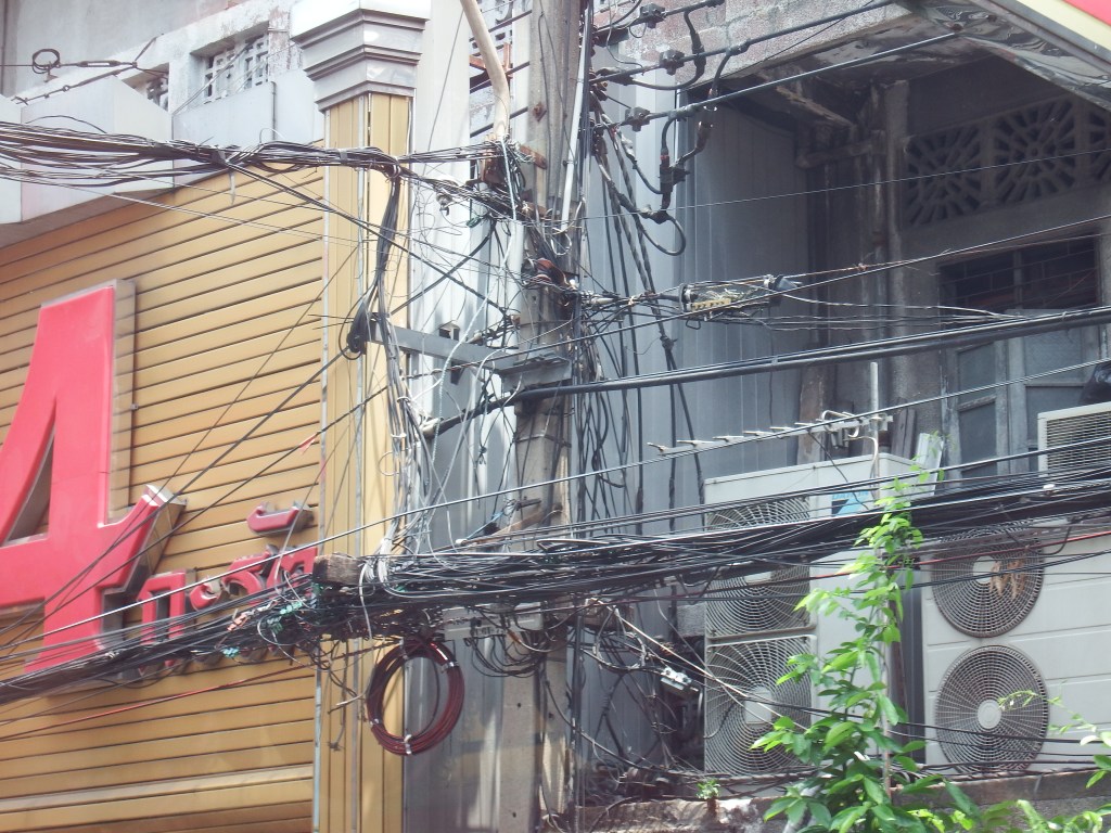But what depresses me the most about all of Thailand is the utilities. The wires and cables are everywhere. How they know where they are or where a break in the cable might be I will never know. What a snarled mess. And it is everywhere.
