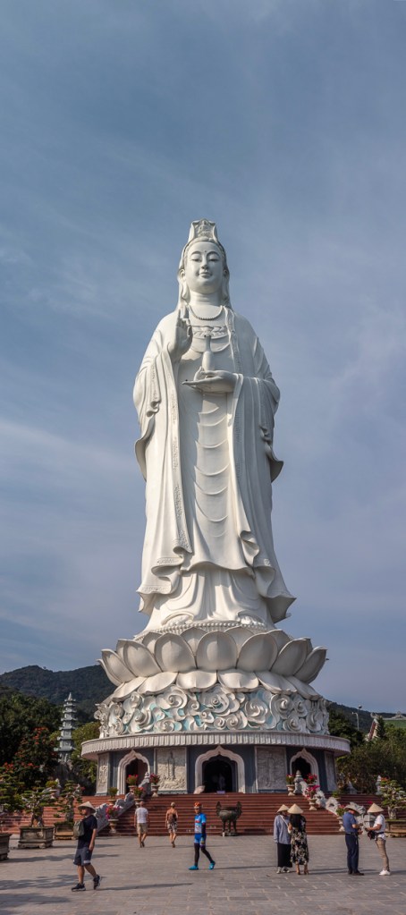 But this Pagoda is best known for its very tall statue of the Lady Buddha. It stands looking out to the sea high up on a hill. Very imposing.