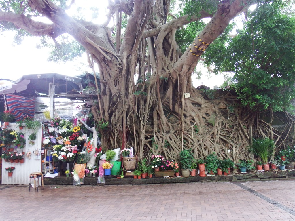 It isn’t just the market that was fun. This Banyan tree was pretty special so it was used to sell things. We then went to Victoria Park at the top of the hill for great views of the city. NOT!. It was cloudy and foggy. We saw nothing.