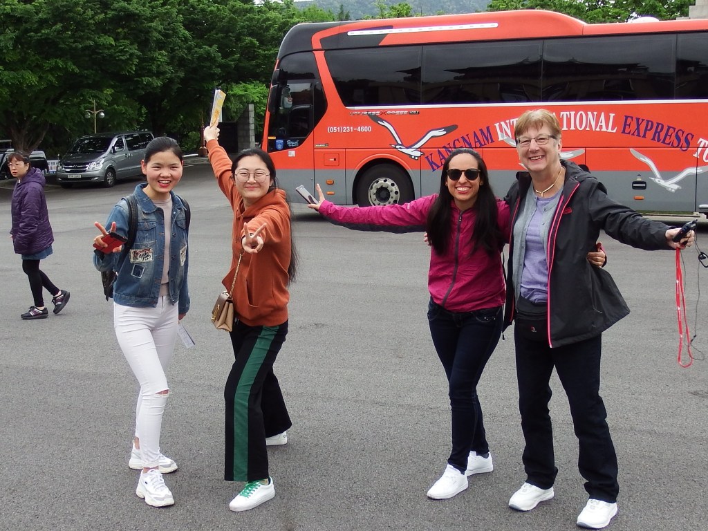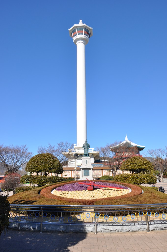 Our most significant stop on our excursion was at the Busan Tower. Unfortunately the weather was so overcast that a white building against a white sky didn’t look good. So I took a beautiful photo from the web. The statue just behind the flower clock was the most famous Korean General in there wars against Japan. The stories sounded much like the history of France and England. Many wars over many generations. Then there is a Buddhist temple just at the right of the photo. And the tower. The tower is just a vantage point about 120 meters high with views at the top to look down over the city. It has no other purpose than to encourage tourism. But it does pretty well at that.