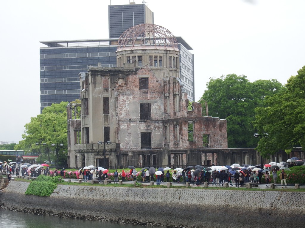 We took another included excursion in Hiroshima. Of course the most important tourist area is the Memorial Peace Park. We toured the park but there was no chance to go into the museum. The line for tickets was at least 2 hours long. The building in this photo is the A-Bomb Dome. It was damaged when the bomb dropped. But it was decided to leave it in the damaged condition as a reminder. There was also a memorial which included the names of all those killed. But besides the building notice the line of people waiting just to buy tickets to the museum. And it was raining.