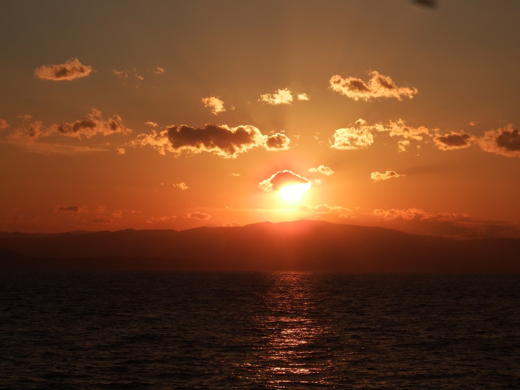 As we were eating dinner the sun went down and was quite pretty with the clouds and the mountains off at a distance.