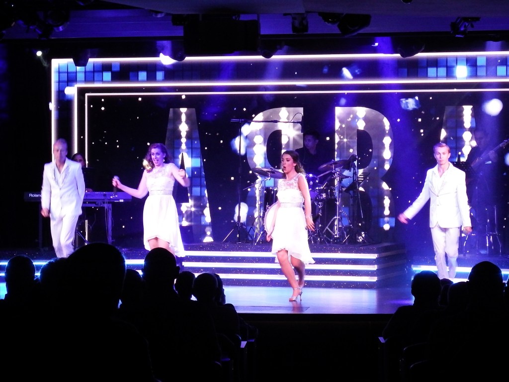 After dinner we went to the theater and watched the Viking Vocalists perform the ABBA Songbook as it is called. We have watched these 4 perform many times now. They have a James Bond, The Beatles, ABBA and then a selection of just their favorites performed just in the atrium where they actually interact with the crowd. They all know us by name.