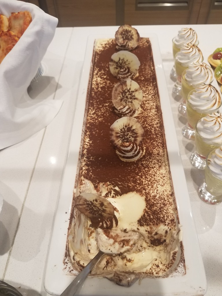 The next day at lunch the World Café (buffet) had a special dessert. A huge tiramisu. Yes Bob, Kathy and I hit it just for you.