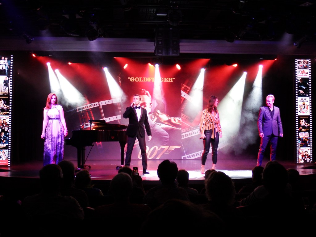 Last evening as we were sailing away from Russia the Viking Vocalists put on a special show for the long term passengers (those on the ship for either 93 days like us or 78 days from Sydney Australia ending in Vancouver Canada). Of course the show was James Bond with From Russia with Love and many other Bond songs.