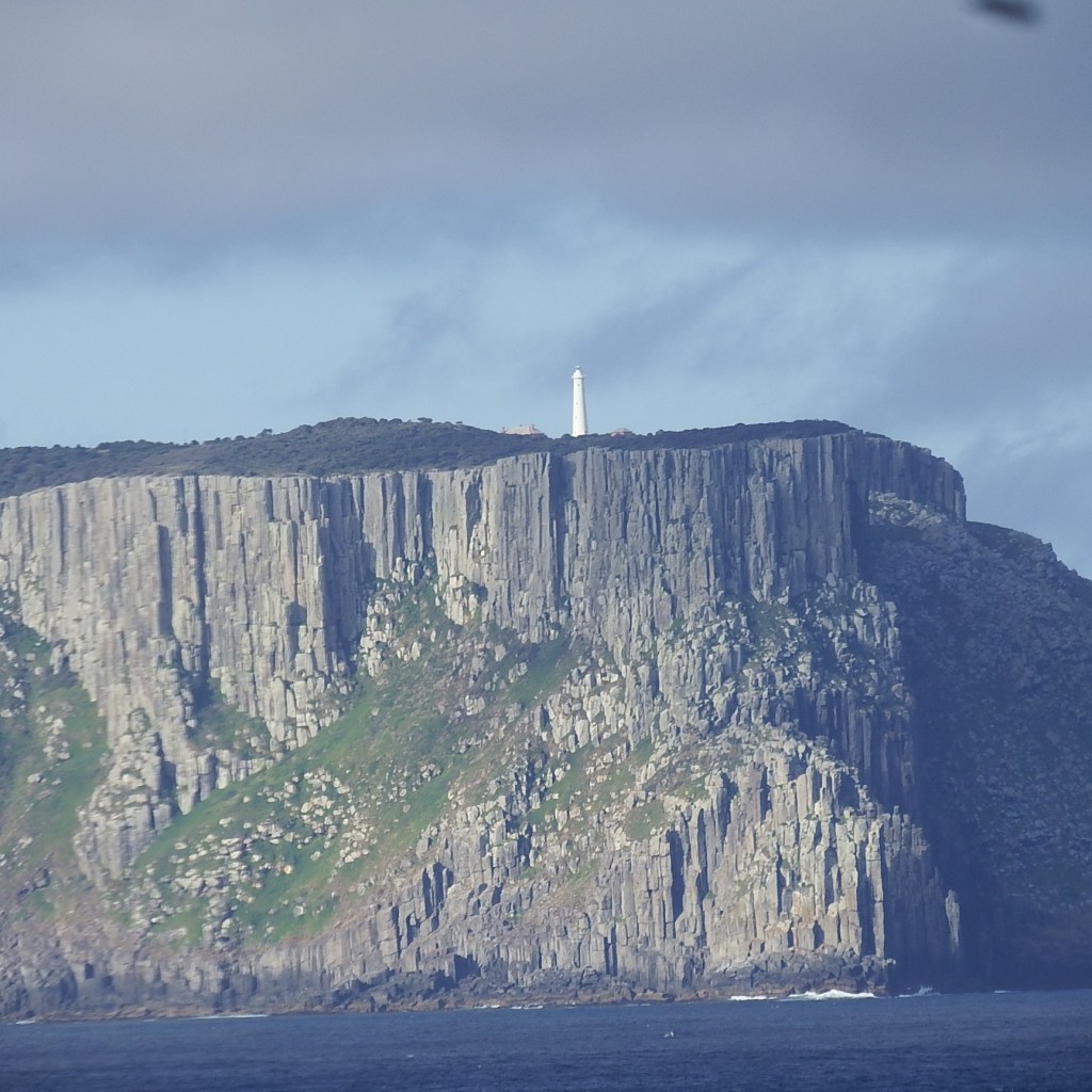 As we sailed away we saw the cliffs and a lighthouse.