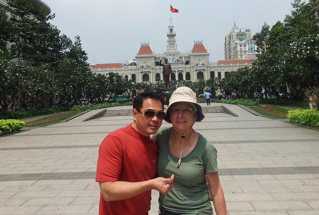 We took the shuttle to the city so we could do some shopping. The Ben Thanh Market is huge and crowded. But we had fun and bought a bunch. Shirts, chocolate, and popup cards.