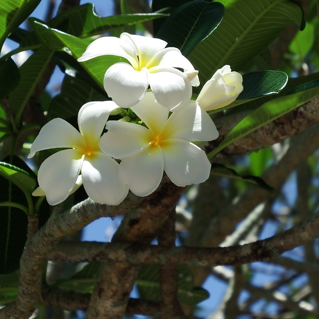 I enjoy many of the trees especially the flowering trees. This is a frangipani flower.
