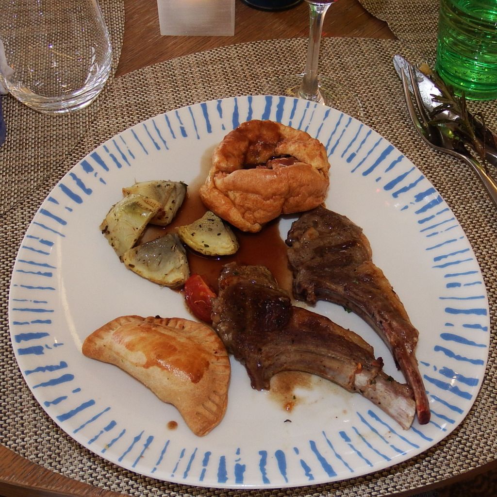 But dinner in the Cafe was special. It was English Night. Lamb chops, grilled artichoke and Yorkshire pudding.